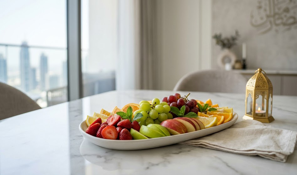 What used to be heavy, dessert-focused tables are now balanced with lighter, fresher options. Fruit platters are no longer an afterthought—they are often the first thing guests reach for after Iftar or during long Eid visits.