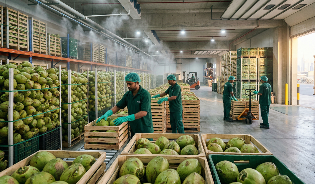 In Dubai’s supply chain, most tender coconuts are imported from countries like India, Sri Lanka, and Thailand. This means what reaches the market has already gone through: