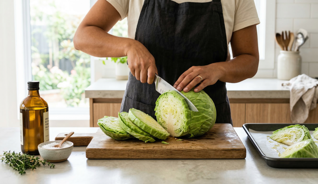 Green cabbage is the most common and reliable choice. It has dense leaves that hold their shape during roasting and develops strong caramelization when exposed to high heat.
