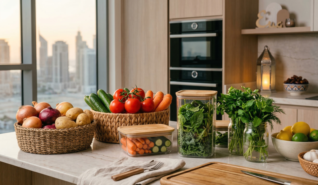 The safest bulk choices are usually vegetables with decent holding power and high repeat use in home cooking. In Dubai households during Ramadan, that often includes onions, potatoes, cucumbers, tomatoes, carrots, cabbage, chilies, lemons, and herbs in moderate quantities. Winter growing conditions in the UAE also support stronger availability for several common vegetables, including leafy greens, cucumbers, tomatoes, radishes, cauliflower, and broccoli during the cooler season.
