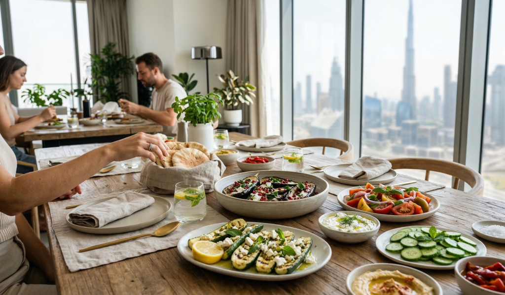 There is a practical reason vegetables dominate sharing platters in Dubai restaurants.