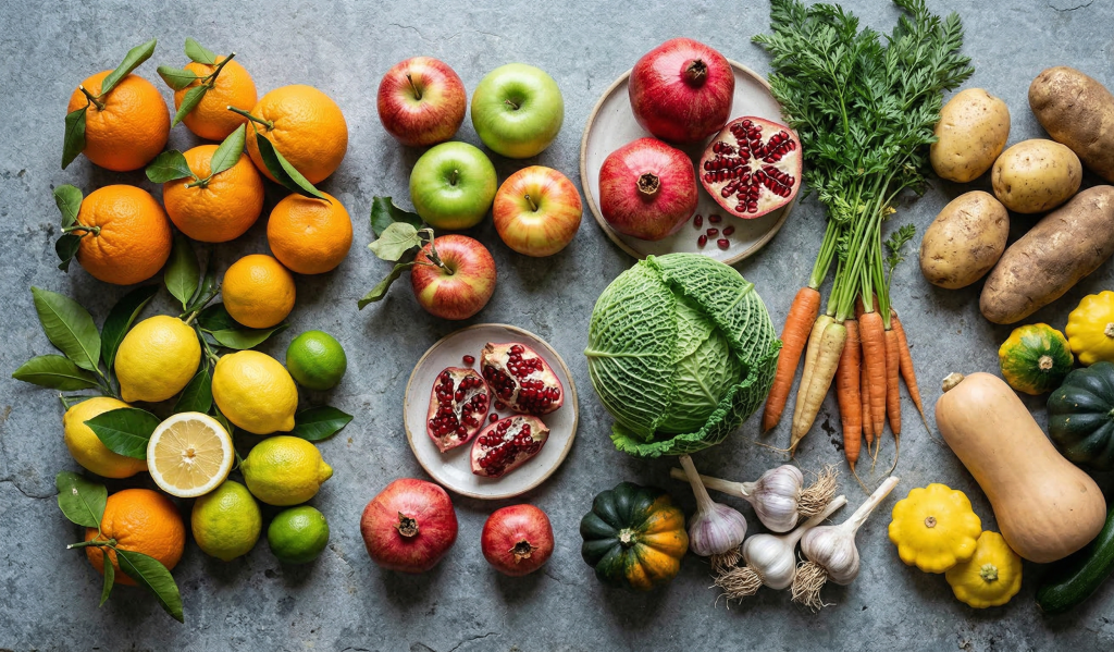 Citrus fruits, apples, pomegranates, root vegetables, cabbage, onions, and squash tend to last longer due to their structure and lower moisture loss.